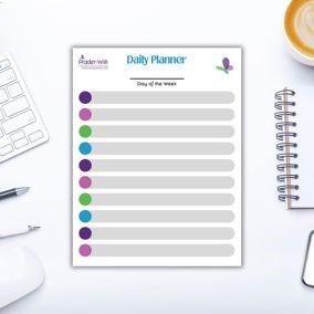 If the summer months disrupt your loved one’s schedule or they need more direction to their day, create a schedule for home with regimented activity times. Make a physical copy of this schedule and hang it up where they can see it. Be sure to include mealtimes. Creating a schedule can help lower your loved one’s anxiety level, provide them with enriching activities, and help you find time to get any necessary chores or work done. Click the button below to download a daily planner template.