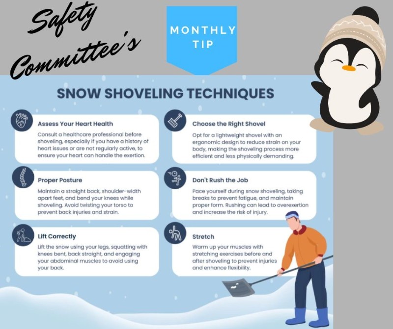 Safety Committee January Monthly Tips Snow Shoveling Techniques